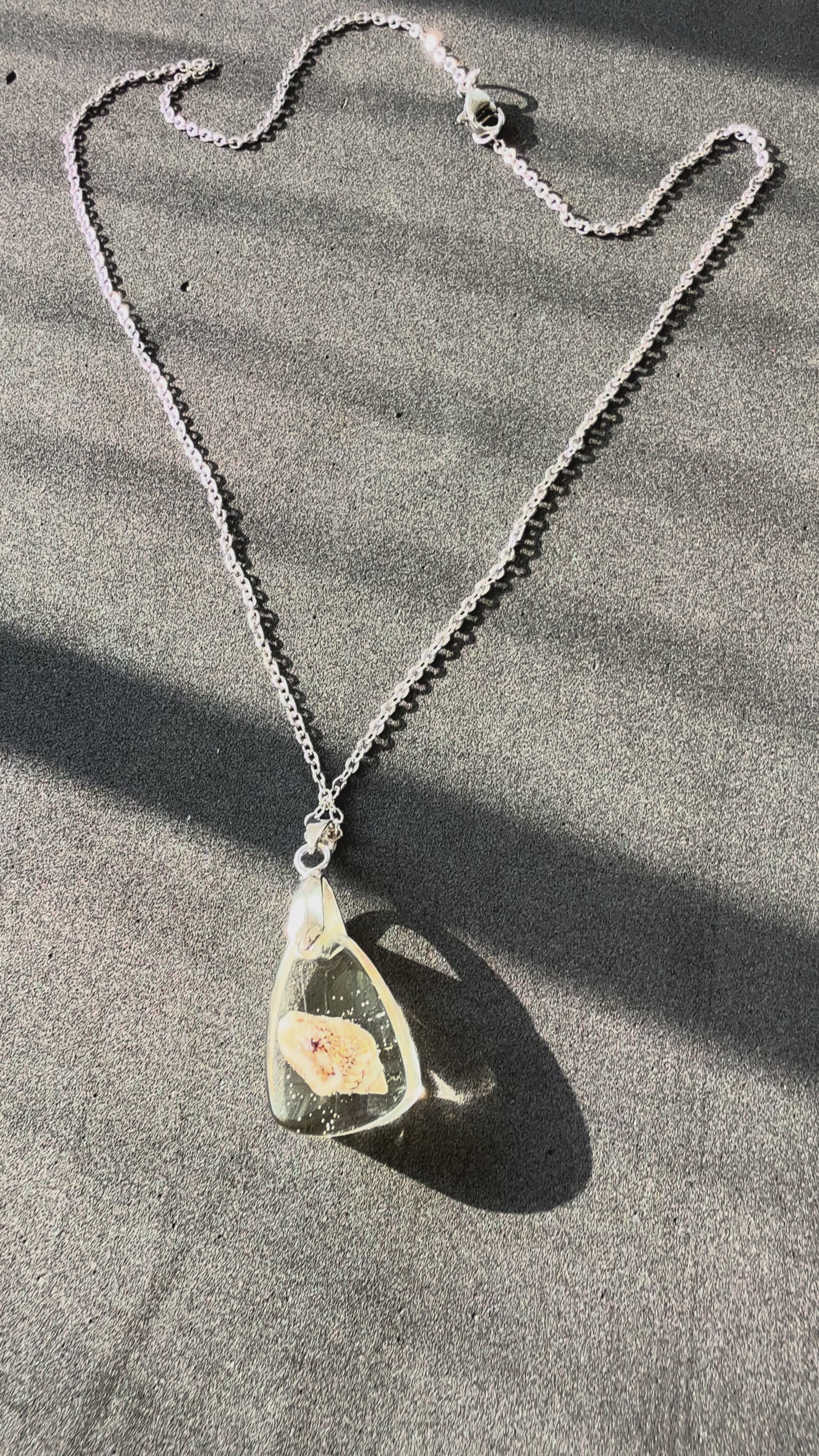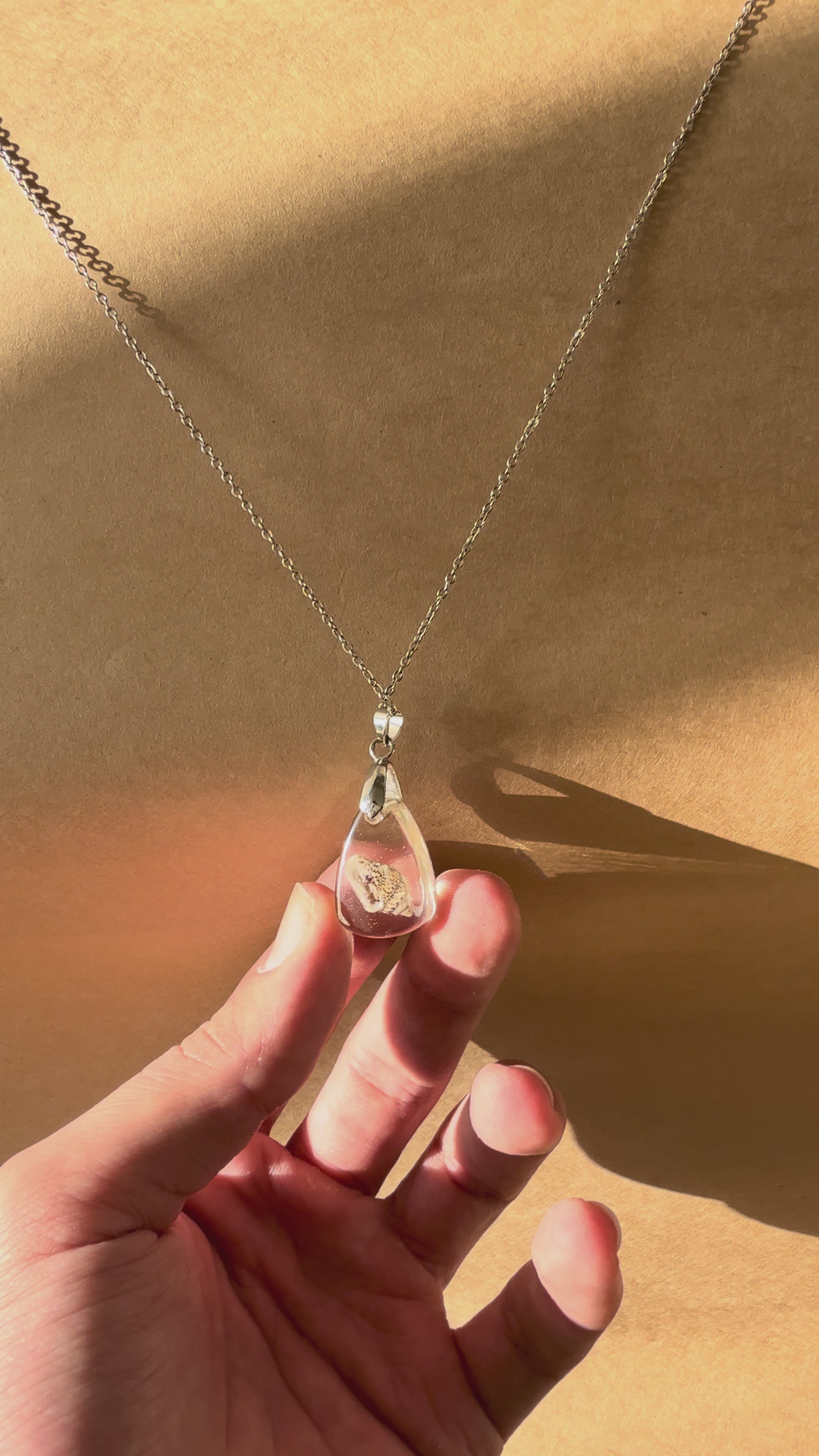 Zarif tasarımıyla göz kamaştıran bu şeffaf damla kolye, içinde saklı deniz kabuğu parçasıyla doğanın güzelliğini taşır. Kristal berraklığındaki reçine, her ışık altında farklı bir parıltı yaratarak benzersiz bir görünüm sunar. Hassas işçiliğin ürünü olan bu kolye, günlük kullanımdan özel anlarına kadar her moda tamamlayıcı olarak tercih edilebilir. Orijinal hediye kutusuyla sunulan bu eser, sevdiklerinize verebileceğiniz anlamlı bir armağan olarak da mükemmeldir.